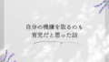 体調不良を経験して気づいたこと